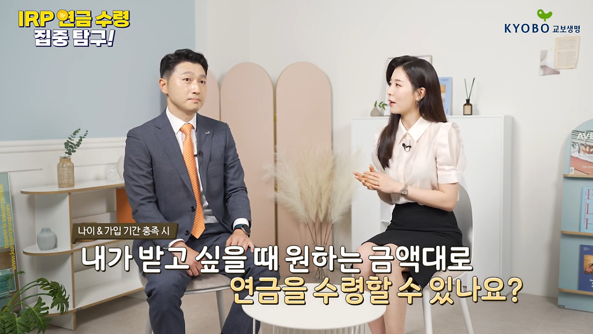 그래서! 오늘은 교봉이가 교보생명 고영현 과장님과 함께 교보생명 IRP 연금 수령 방식을 소개하려고 해. 고영현 과장님께서 마지막 꿀팁까지 다 알려줬다고 하니, 친구들 모두 놓치지 말고 꼭 알아두자!