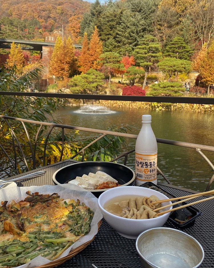 배를 든든하게 채워야 단풍 구경도 잘 할 수 있는 법! 아름다운 경치를 관람하기 전 허기가 진다면, 화담숲과 함께 고소한 막걸리와 바삭한 해물 파전을 즐길 수 있는 ‘번지 없는 주막’을 추천해. 번지 없는 주막은 화담숲 안에 위치해 있어 관람 전후로 배가 고픈 관람객들에게 많은 사랑을 받는 곳이야. 특히, 호수 근처 테라스는 정말 인기가 많은데 맑은 호수와 붉은 단풍🍁을 감상하며 음식을 먹으면 신선 놀음을 하는 기분이라고 해! 운이 좋으면 호수에서 헤엄을 치는 원앙도 볼 수 있다니 자리가 비어 있다면 고민하지 말고 차지해 봐.😎