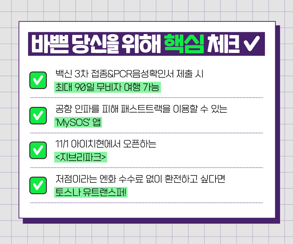 ✅ 백신 3차 접종 & PCR 음성확인서 제출 시 최대 90일 무비자 여행 가능