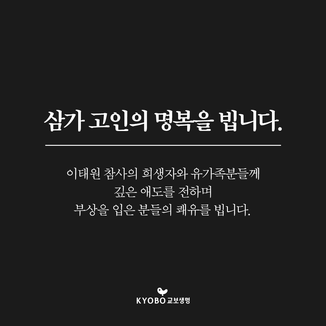 10월 29일 이태원에서 발생한 참사에 온 마음을 다해 애도의 마음을 전합니다.
