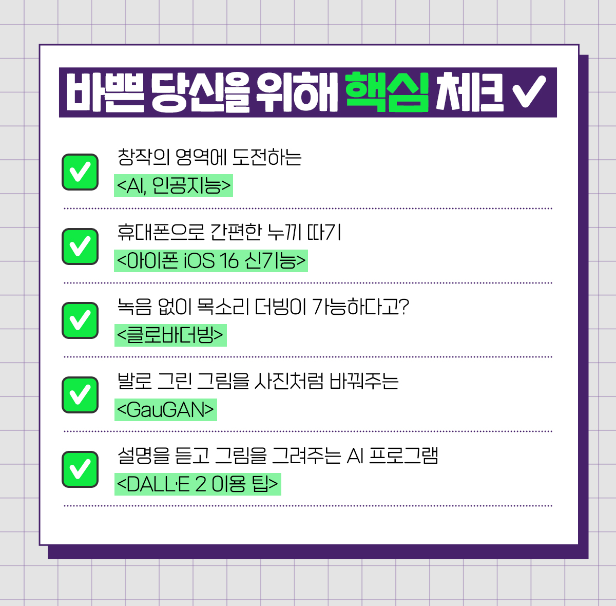 유튜브 쇼츠 좋아하는 친구들, 가끔 분명 다른 채널인데 똑같은 목소리로 더빙이 된 영상 본 적 있지? 사실 요즘은 AI 음성 더빙 기술이 엄청 발전해서 사람이 직접 녹음하지 않아도 영상에 목소리를 넣을 수 있다고 해. 네이버에서 나온 <클로바더빙>도 별도의 녹음 작업 없이 음성 더빙을 할 수 있는 프로그램이야! 클로바더빙은 네이버가 만든 음성합성 AI 기술인 ‘클로바 보이스’를 통해 개발됐는데, 텍스트만 입력하면 성별👦, 연령👵, 국적🗽 등 다양한 음성을 선택해 영상에 사용 가능해. 목소리가 자연스러워서 ‘오은영의 금쪽 상담소’, ‘요즘 육아 금쪽 같은 내 새끼’등의 프로그램에도 사용되고 있지!