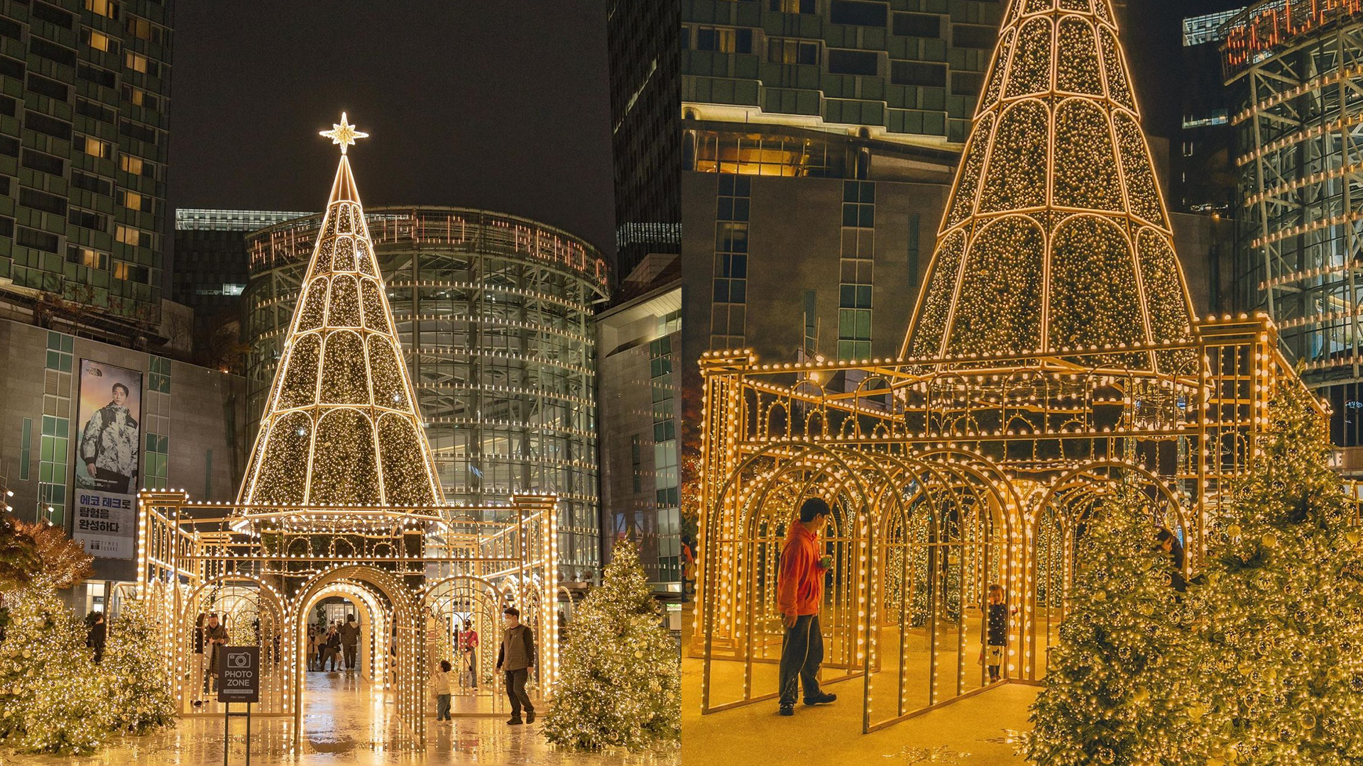 이번에는 비교적 사람이 적어 기다릴 필요가 없는 타임스퀘어 트리를 소개할게! 영등포 타임스퀘어 1층 자라 매장을 등지고 앞을 보면 6번 게이트가 나오는데, 여기로 나오면 작은 트리와 함께 숨은 포토존이 있어 쉽게 인생샷을 건질 수 있어📸 이곳에서도 대형 트리를 놓칠 순 없지! 6번 게이트에서 사진을 찍고 나오면 타임스퀘어의 메인 대형 트리가🎄 보일 거야. 더현대, 샤롯데가든 보다는 사람이 적기 때문에 사진 찍기에도 편하고, 조명으로 꾸며진 트리와 사방의 거울 덕에 사진도 잘 나온다고 해!