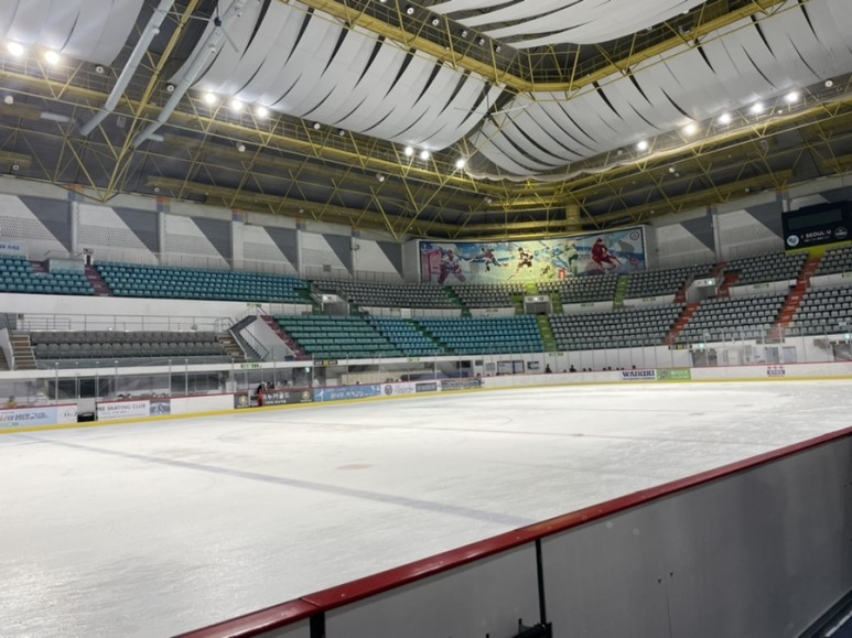 목동 종합운동장에 위치한 <목동 아이스링크>는 아이스링크장 중에서도 갓성비❣를 자랑해! 입장료는 평일 기준 성인 4.000원💰인데 주말에는 30%가 가산되어 5,200원이니 참고하자. 그리고 스케이트 결제료와 보증금은 입장료와 별도야! 입장료는 카드로 결제할 수 있는데, 보증금은 현금만 가능하니 현금을 꼭 챙기는 걸 잊지 말자! 목동 아이스링크는 지상과 지하로 나누어져 있는데 그날의 방문 상황이나 경기 일정에 따라 현장에서 안내해 주니까 참고하기! 1층에는 매점과 푸드 라운지🥧가 있는데, 열심히 즐긴 후에 허기진 배를 채우기에 딱이야! 🐷