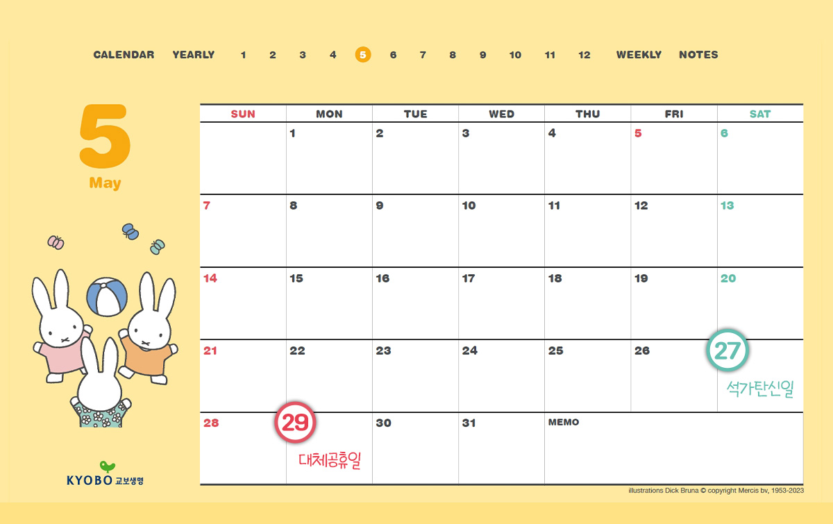 1월 1일 신정부터 일요일이라 아쉬워 한 친구들 많지?! 그래도 2023년부터 좋은 소식이 있어. 지금까지 석가탄신일과 성탄절은 대체공휴일 적용 대상이 아니었지만, 올해부터 포함되었대! 📅덕분에 올해 석가탄신일은 5월 27일 토요일이지만 29일 월요일이 대체공휴일로 지정돼 사흘 연속 쉴 수 있게 되었어. 올해 휴가나 여행 계획을 하고 있는 친구들은 참고하길 바라!😉