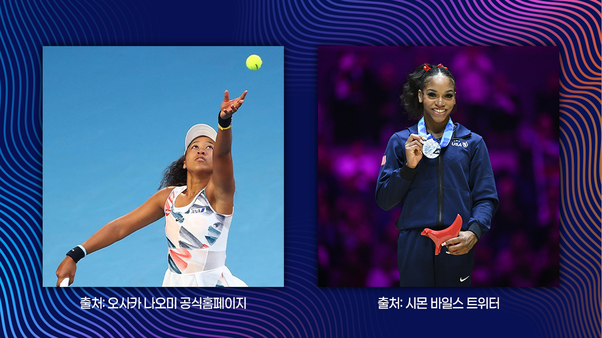 실제로 프랑스 테니스 스타 오사카 나오미는 정신건강상의 문제를 호소하며 기자회견에 불참했던 적이 있고, 2020 도쿄올림픽에 출전한 미국 체조선수 시몬 바일스는 자신의 정신건강을 지키기 위해 대부분의 경기에 기권하기도 했어. 이외에도 수많은 세계적인 선수들이 정신적인 문제를 겪고 있다는 사실을 밝혀오고 있지.