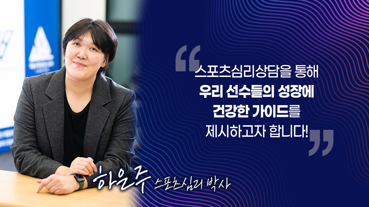 하은주 박사: 스포츠 심리상담이라는 것이 최근에 조금 활성화되고 있는 추세긴 하지만, 아직도 정신적인 문제가 있어야만 받는 것이라는 인식이 남아 있어요. 우리 선수들이 운동을 하는 과정에서 겪는 신체적·심리적으로 힘든 부분, 부상 관리에 대한 스트레스 등의 관리에 도움이 되는 것이 스포츠 심리상담입니다.