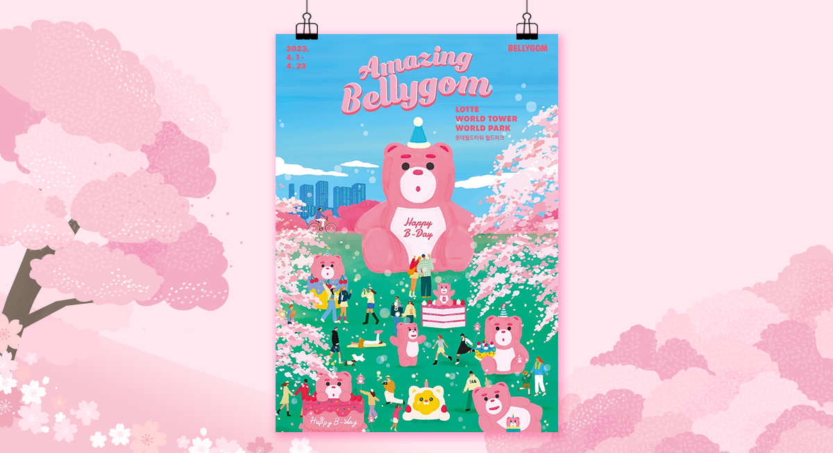 무려 145만 팬덤을 보유한 벨리곰🧸이 4월 벚꽃 시즌🌸에 맞춰 돌아왔어. 기존 축제보다 더 크고 다채롭게 진행되는 ‘어메이징 벨리곰, Happy B-day’ 파티는 잠실 롯데월드타워 메인광장에서 열려. 이번 행사에서는 18m 크기의 초대형 벨리곰과 벨리곰 케이크, 벨리곰 단짝 친구인 꼬냥이까지 만날 수 있어.