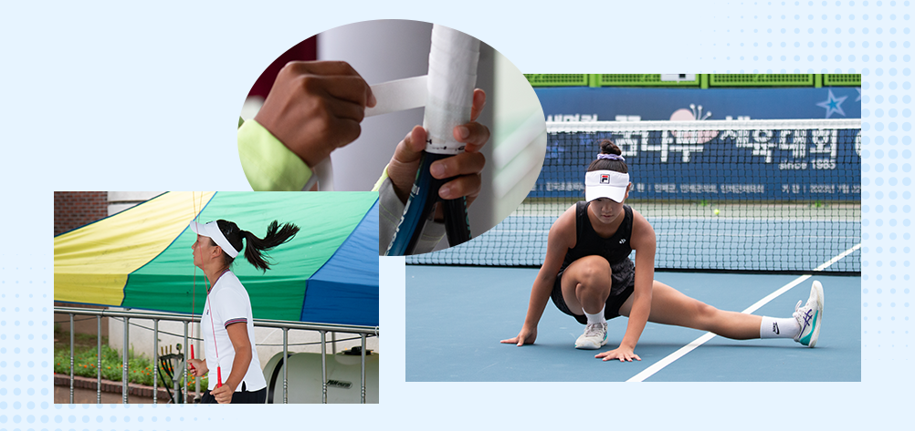 경기장 곳곳에서 꼼꼼히 라켓을 점검하고 스트레칭을 하는 등 저마다의 방법으로 몸을 풀고 있었는데, 다들 그동안 얼마나 연습을 열심히 해왔는지 테니스 꿈나무 친구들은 하나같이 구릿빛 피부의 건강미가 뿜뿜! 💪😎 많은 사람들 사이에서도 누가누가 선수인지 한눈에 알아볼 수 있었지.