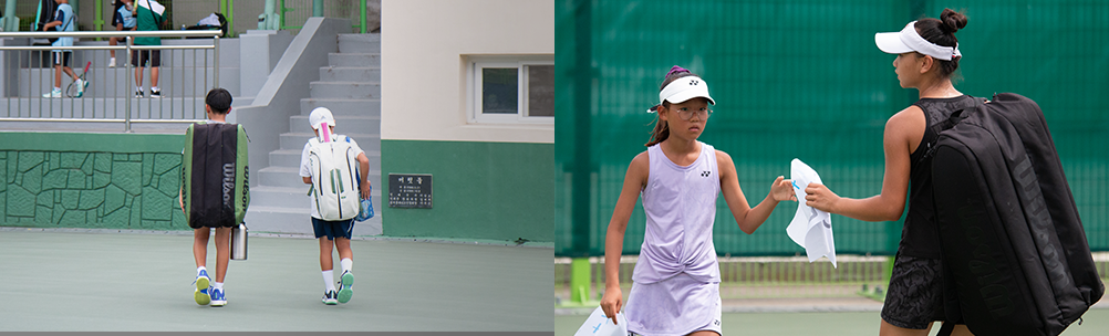 우리 테니스 꿈나무 친구들은 타오르는 승부욕으로 폭발적인 경기력을 보여주면서도 상대방을 고생시키는 실수를 했을 때는 눈인사를 주고받고, 숨 가쁜 랠리 끝에는 다음 선공이 자신이 아니더라도 공을 주워 상대에게 건넸어. 이외에도 경기 규정은 아니지만, 서로에 대한 존중을 기본으로 아주 사소한 행동에도 예의를 지키는 모습이었어.💕