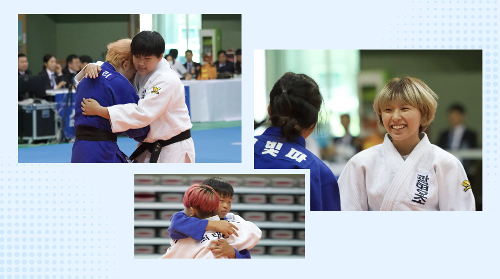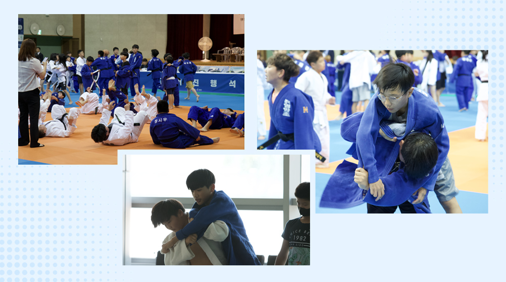 유도라는 종목에서 만나 같은 목표를 꿈꾸는 친구들이기 때문에, 누구보다도 서로를 이해하고 공감해 준 우리 친구들. 울먹이는 친구를 말없이 꼭 안아주고 서로를 향해 해맑게 웃어주었지.🥰 유도는 단지 기술 연마와 체력 단련에 그치는 게 아니라, 올바른 인격 수양과 난관 극복 의지력을 기르는 수련 과정이라고 하는데. 우리 유도 꿈나무 친구들은 이미 그 미덕을 모두 갖추고 있는 것 같았어!👍