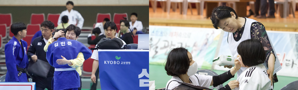 유도는 격투기 종목인 만큼 부상에 대해서도 방심할 수 없잖아? 한 학생은 경기 중 부딪힌 코에서 🩸코피가 멈추지 않아 의무실에서 치료를 받고 있더라구. 😭닭똥 같은 눈물을 뚝뚝 흘리는 우리 친구. 알고 보니 아파서 우는 게 아니라, 코피가 터지는 바람에 시합을 제대로 진행하지 못해 아쉬운 마음에 눈물이 난다고 하더라. 우리 친구들이 얼마나 열심히 연습해 왔는지 알겠지?