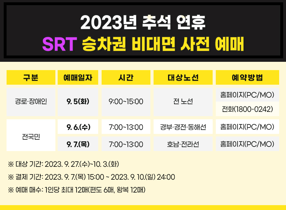 ▶2023년 추석 연휴 SRT 사전 예매 전용홈페이지 바로가기