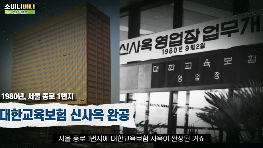 약속을 3년이나 앞당긴 1980년, 대산 신용호 창립자는 약속은 마침내 현실로 만들어 냅니다. 서울 한복판 종로1가 1번지에 대한교육보험의 사옥이 지어진 것입니다.