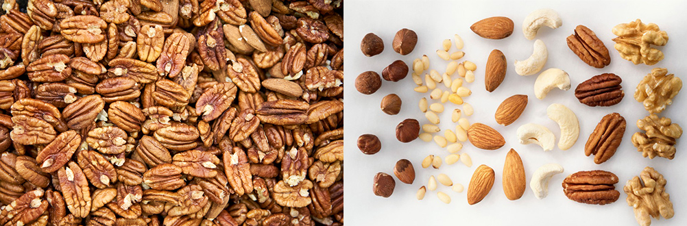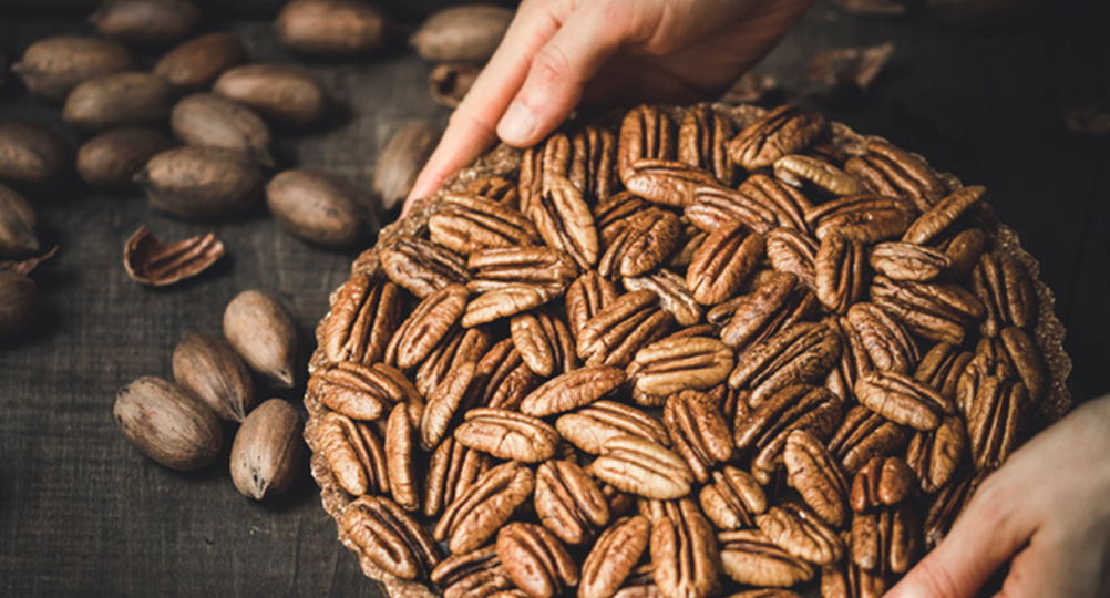 피칸에는 칼슘 성분이 풍부해 골밀도를 강화하는데 도움을 주고, 아르기닌 성분이 함유되어 있어 모발에 영양 공급을 해준다고 해👩🦰. 이렇게 좋은 성분이 많이 있는 피칸이지만 하루에 스무 알 이상은 먹지 않는 게 좋대. 칼로리도 높을 뿐 아니라 배탈을 일으킬 수 있거든. 피칸파이 한 조각에 피칸이 4~5알은 들어가니까, 하루에 네 조각은 넘기지 않는 게 좋겠지?🥧