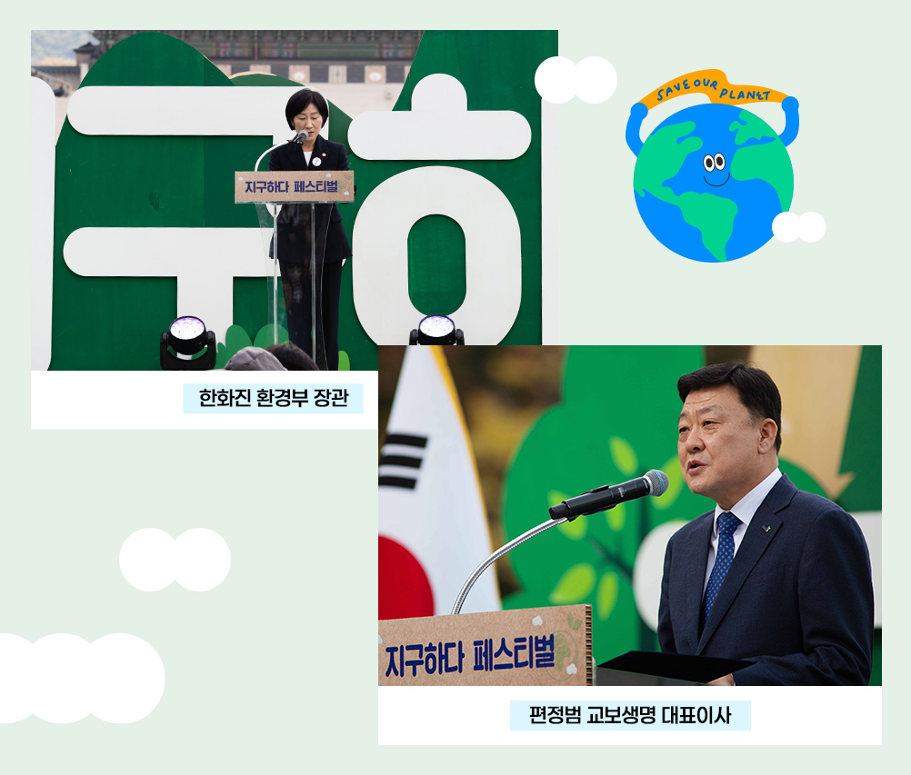 편정범 교보생명 대표이사님도 ‘교보생명은 ESG 활동으로 환경부와 함께 환경교육과 사회문제 해결을 위해 노력하고 있으며 미래 세대들이 쾌적한 환경에서 건강한 삶을 이어갈 수 있도록 환경적, 사회적 역할을 다하겠다’고 말씀하셨지.