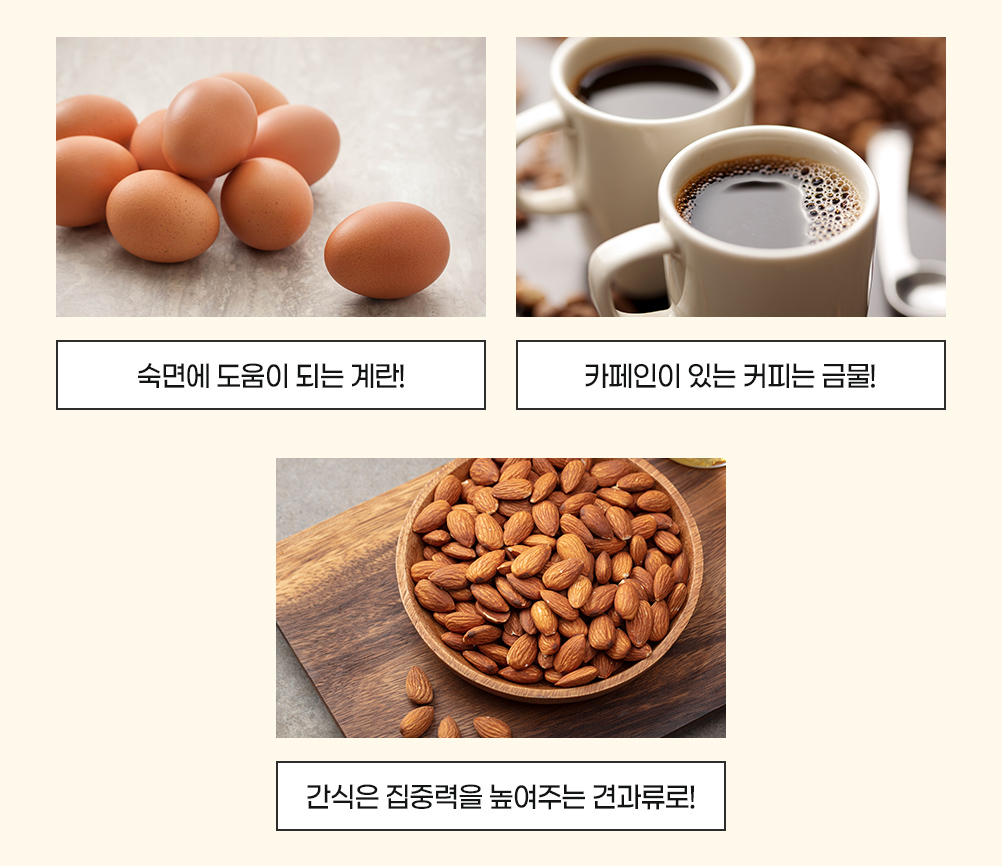 ✅ 컨디션 관리를 위해 계란, 견과류 OK! 커피는 NO!
