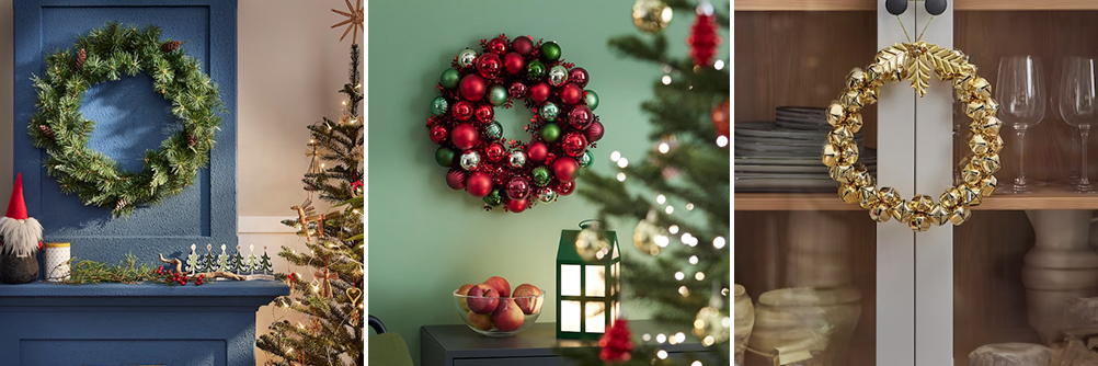 리스는 걸어 놓기만 해도 크리스마스 분위기를 만들어 주는 일등공신 소품이야👍. 트리처럼 공간을 많이 차지하지 않고도 예쁜 인테리어를 완성할 수 있지.