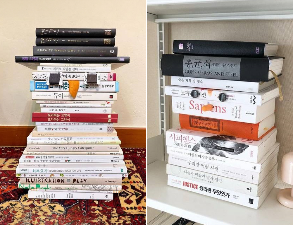 크리스마스 인테리어 소품을 사지 않고도 집에 있는 소품을 활용해 크리스마스 분위기를 낼 수도 있어! 그중 하나가 바로 책 눈사람이야☃! SNS에서 본 친구들도 있을 것 같은데, 간단하면서도 귀여워서 최근 크리스마스 홈 인테리어로 인기를 끌고 있어😍.