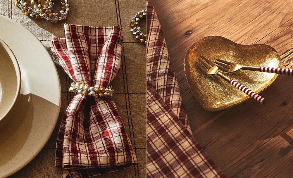 체크무늬도 좋은 아이템이야. 체크무늬 천을 식탁에 깔거나 체크무늬 쿠션을 소파에 올려놓는 거지🪑. 또는 체크무늬의 냅킨을 식탁에 올려 분위기를 내거나, 포크나 숟가락 등에 체크무늬가 포인트로 있는 것 역시 추천해주고 싶어🤗!