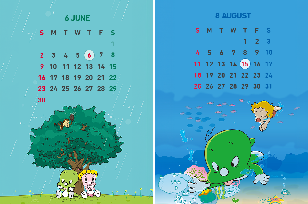 아, 참! 교봉이와 함께 내년 공휴일을 알아보면서 달력에 눈길이 간 친구들도 많을 것 같아👀. 그 맘 충분히 이해해. 귀여운 아기 공룡 둘리와 그 친구들이 달력에 있으니, 눈길이 갈 수밖에 없지😆! 귀여운 둘리 모바일 달력은 교보생명 디지털 패키지에서 다운 받을 수 있어. 달력뿐만 아니라 디지털 스케줄러도 준비되어 있다구🙌!