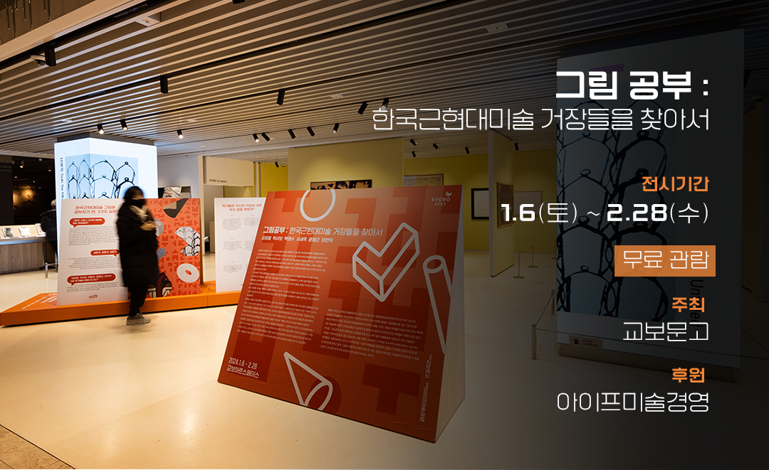 혹시 미술관이 어렵게 느껴지는 사람?! 전시되어 있는 그림이 도통 무슨 이야기를 하는지 모르겠고 말이야. 그런 사람들을 위해 추천하고 싶은 전시가 있어! 바로 교보아트스페이스에서 진행 중인 <그림 공부 : 한국근현대미술 거장들을 찾아서> 전시야.