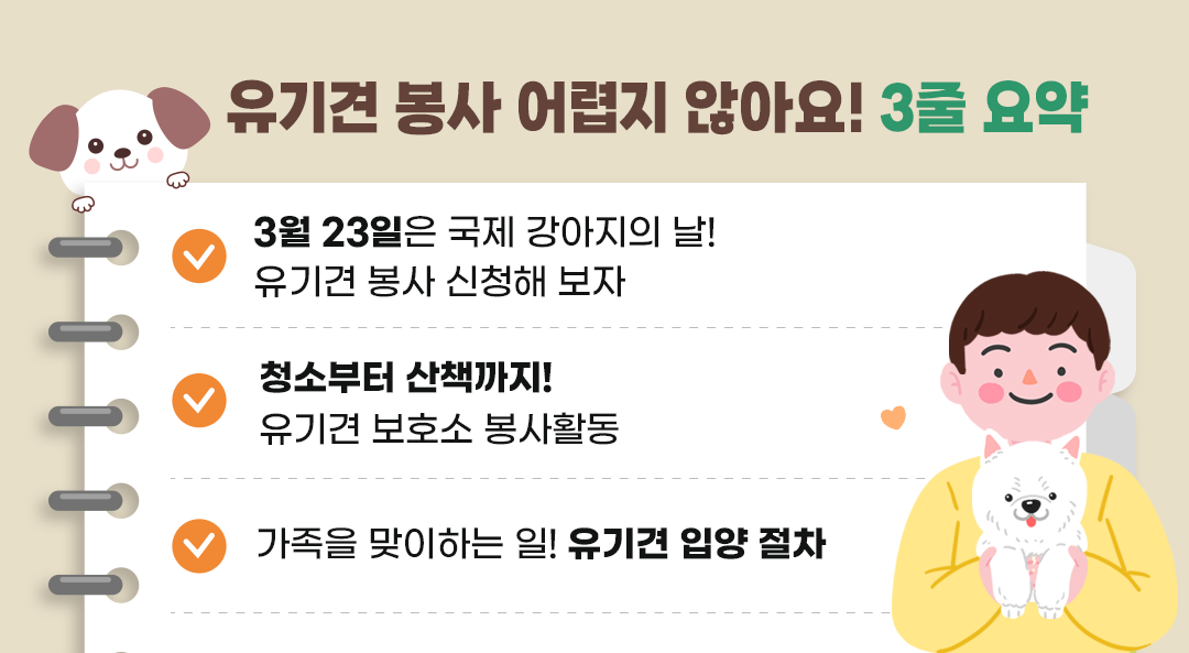 ✅ 3월 23일은 국제 강아지의 날! 유기견 봉사 신청해 보자
