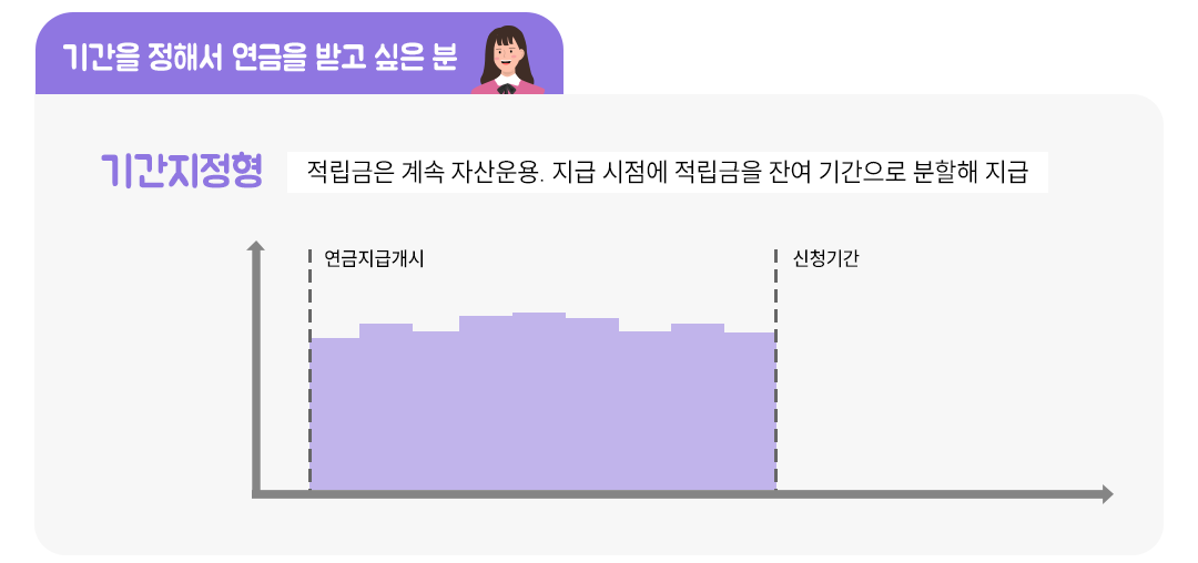 <확정기간연금형>은 정해진 기간 동안 적립금을 균등하게 나누어 받는 방식을 말합니다.
