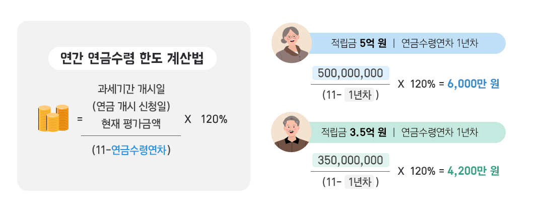첫번째는 '연간 연금수령한도' 이내로 수령해야 한다는 점입니다.