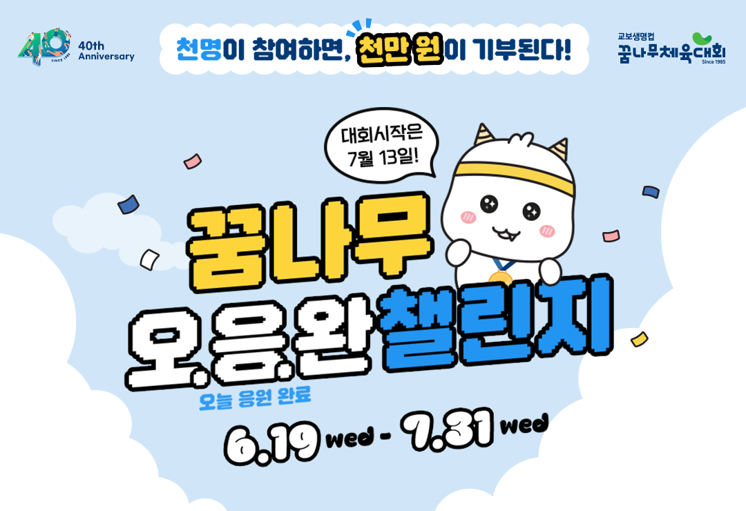 오는 7월 13일 개막하는 교보생명컵 꿈나무체육대회는 지난 40년간 수많은 체육 인재들을 발굴하고 성장시켜 온 유소년 스포츠의 대표 무대입니다. 대회에 앞서 진행되는 다채로운 기념 행사와 캠페인을 통해, 보다 많은 시민들이 체육 꿈나무들을 응원하고 함께 의미를 나눌 수 있기를 기대합니다.