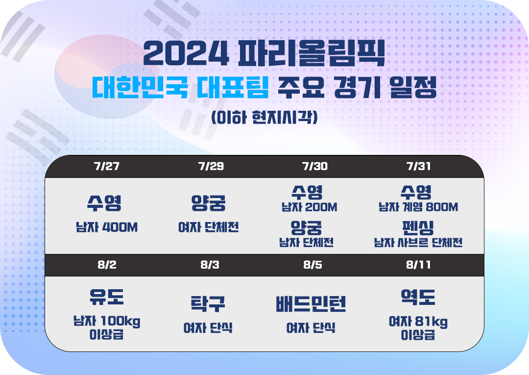 오는 7월 26일부터 시작되는 2024 파리올림픽, 우리나라 대표팀의 활약을 주목해줘!