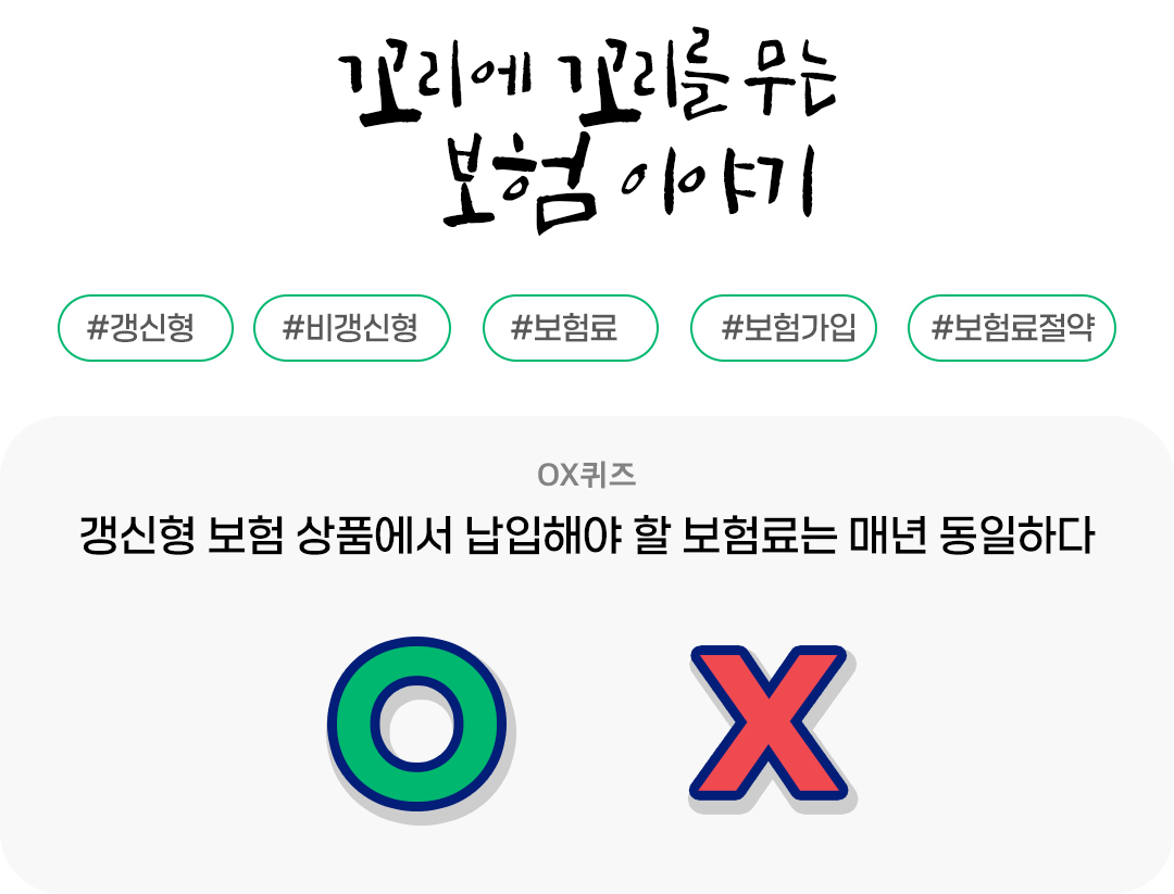 그런데 비싼 보험료가 설상가상으로 줄줄 새고 있다면, 어떨 것 같나요? 여러분의 보험료는 안녕하신가요? 그래서 오늘은 새는 보험료를 막고, 더 나아가 보험료를 아끼는 꿀팁까지 소개해 드리려고 합니다. 먼저 OX 퀴즈로 오늘의 주제를 만나보시죠.