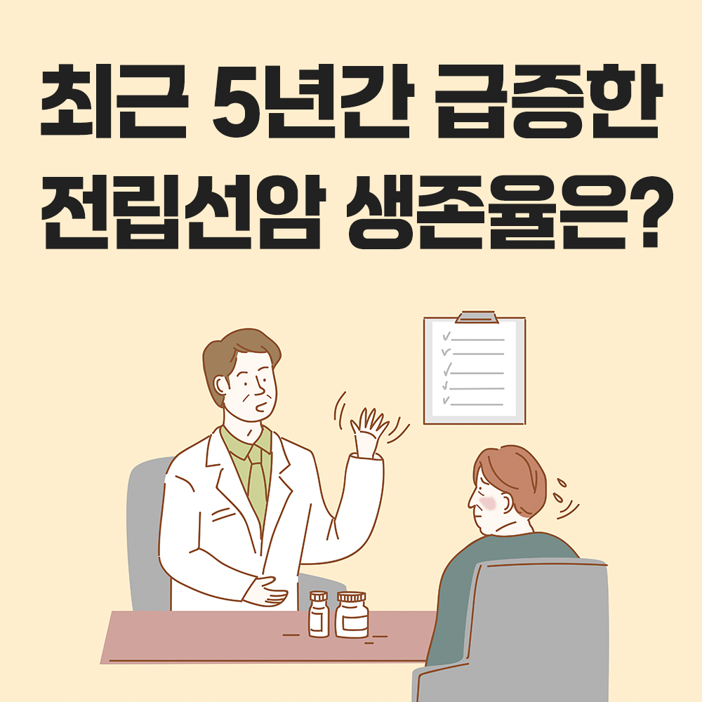 최교보 씨는 병원을 나오면서 바로 ‘전립선암 생존율’을 검색해봤습니다. 과연, 결과는 어떻게 나왔을까요? 이번 건강톡에서는 남성암 중 최근 5년간 발병률이 급증하고 있는 전립선암의 원인과 증상, 생존율 등에 대해 자세히 알아보겠습니다.