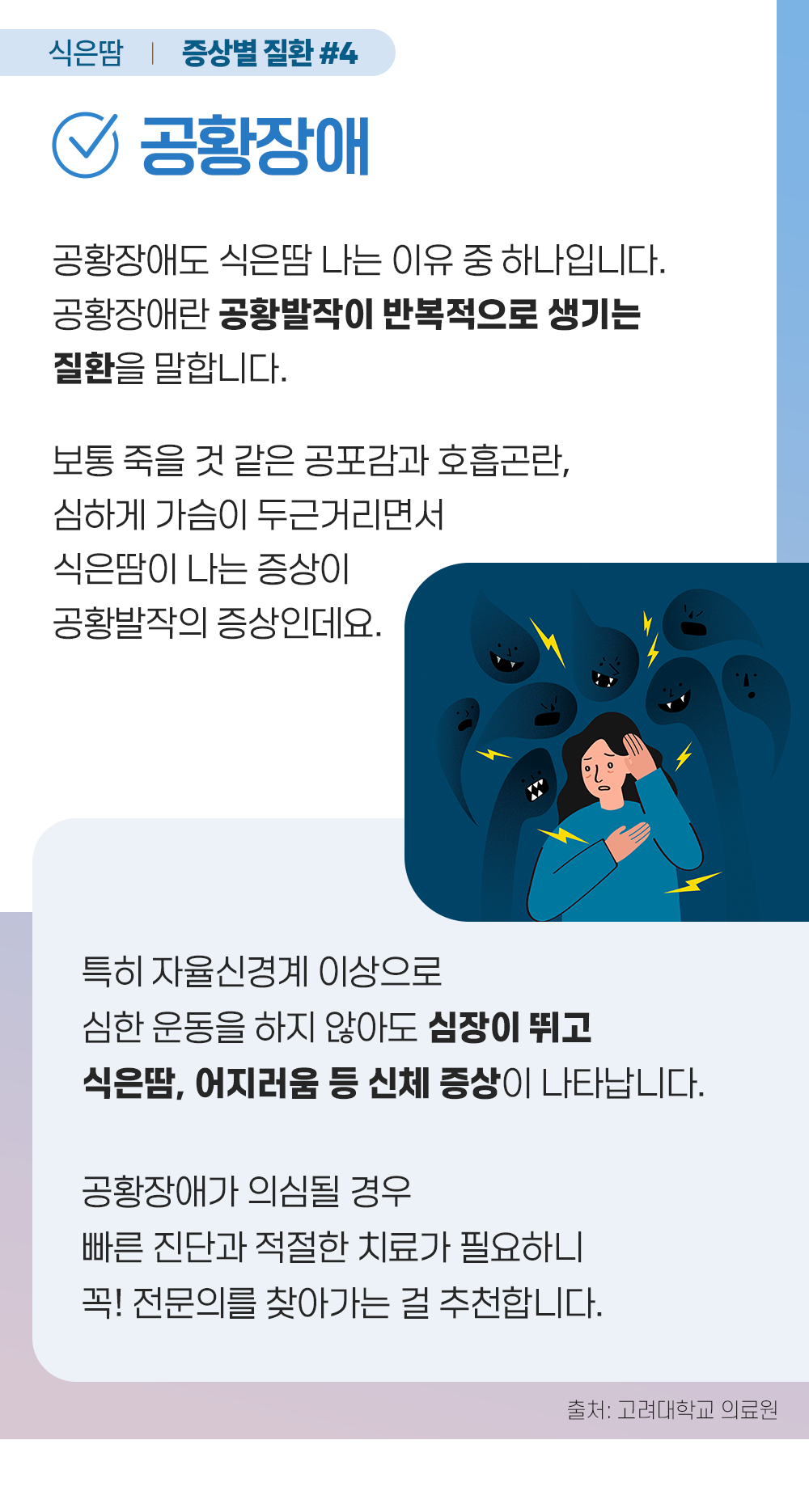 공황장애도 식은땀 나는 이유 중 하나입니다.