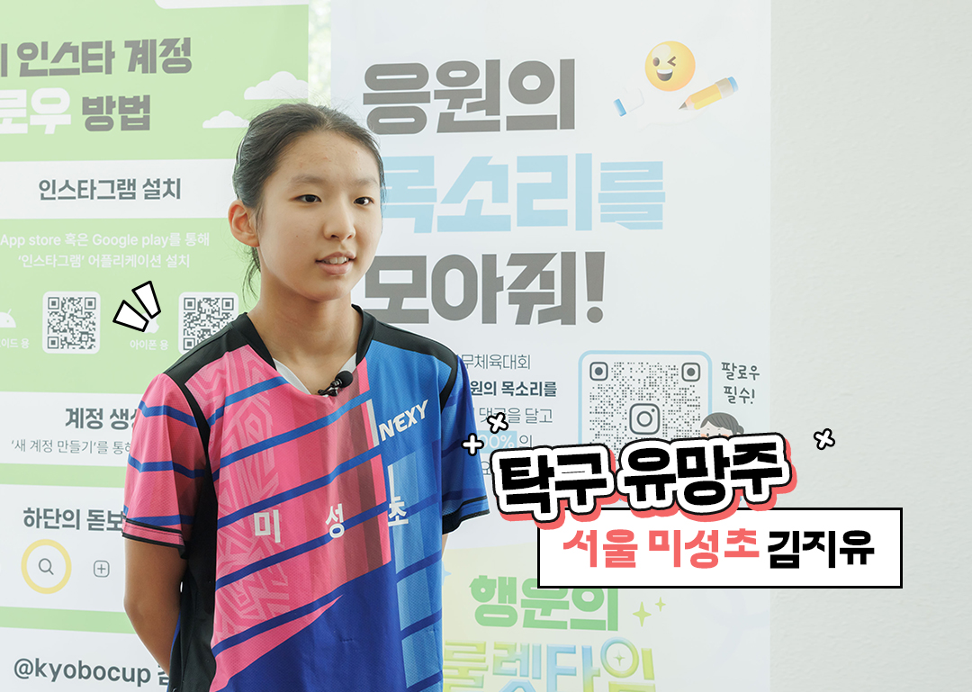 안녕하세요! 2025 교보생명컵 꿈나무체육대회 탁구 대회에 참가한 서울 미성초등학교 6학년 김지유라고 합니다.