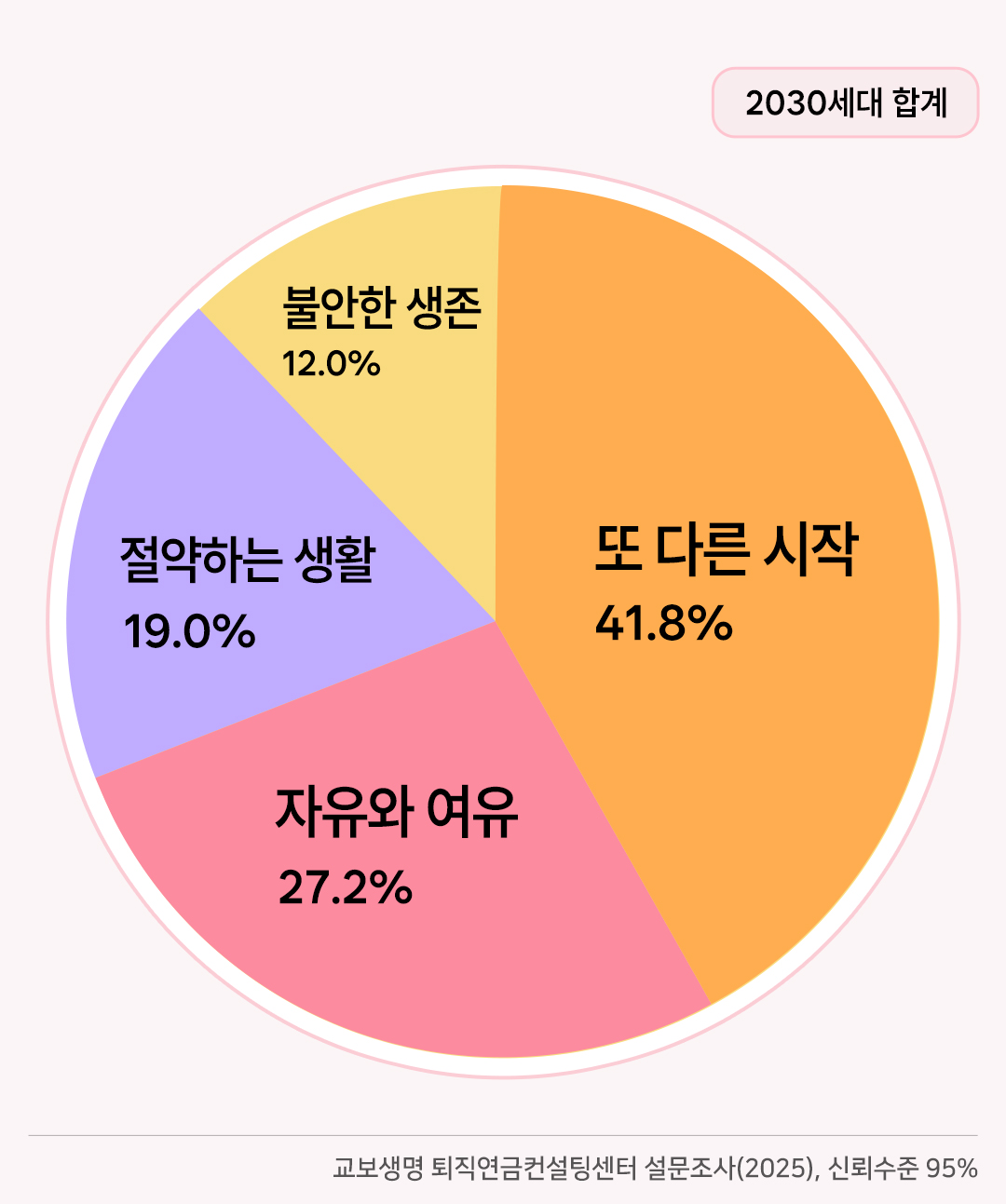 이는 30대가 20대와 비교해 결혼이나 주택 마련, 자녀 계획 같은 사회적 책임이 높아지는 시기여서 ‘은퇴’를 좀 더 현실적인 문제로 체감하고 있음을 보여줍니다.