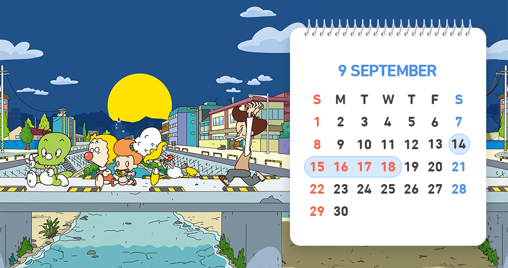 2월에 설 연휴가 있었다면 9월은 추석 연휴가 있는 달이야🌝! 2024년 추석은 17일, 화요일이라고 해. 덕분에 14일(토)부터 15일(일), 16일(월), 17일(화), 18일(수)까지 무려 5일간을 쉴 수 있지🤩! 앞뒤로 연차를 쓰게 된다면 꽤 오랜 시간 쉴 수 있겠다😏. 여행을 갈 예정이라면 이때를 노리는 것도 좋을 것 같아🧳!